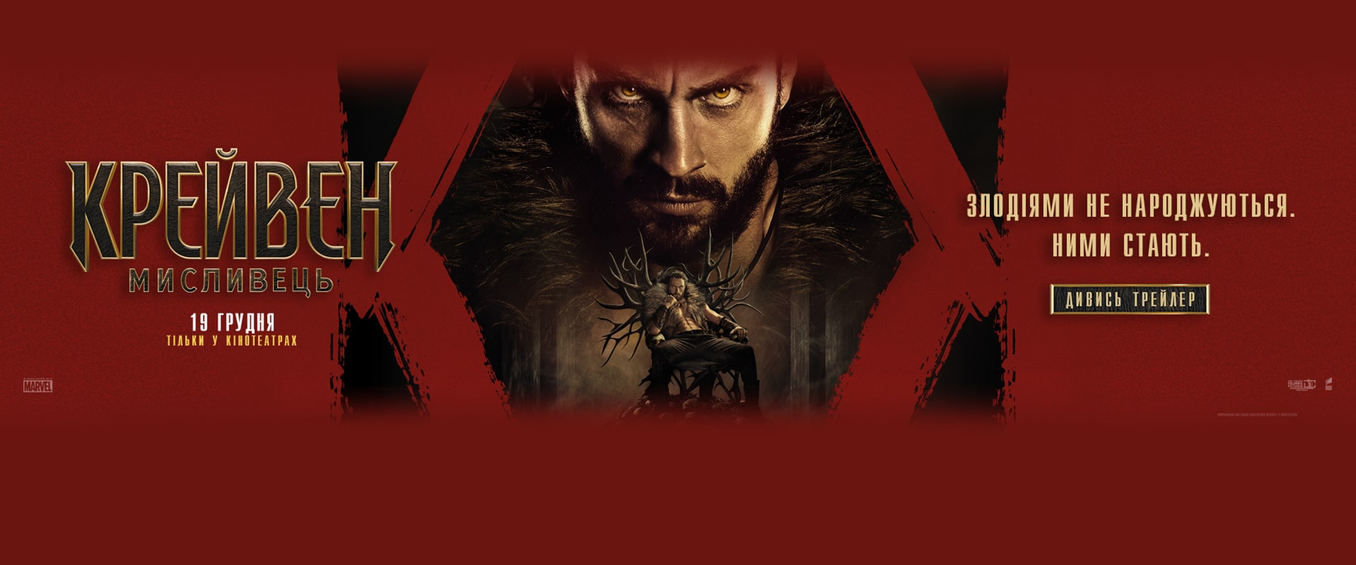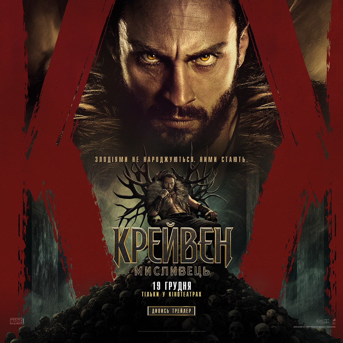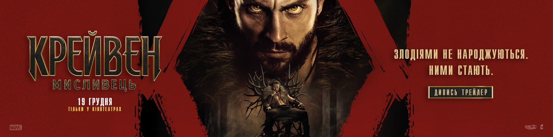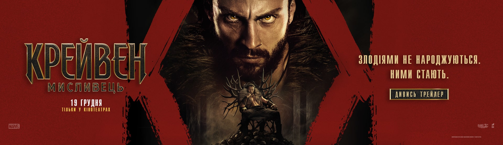 Аарон Тейлор-Джонсон у новій брутальній історії про становлення одного з найвідоміших антигероїв всесвіту Marvel! Загартований жорстокістю свого батька, Крейвен стає на шлях помсти, що не лише робить його найвидатнішим мисливцем у світі, але й перетворює на одну з найстрашніших постатей цього всесвіту!
