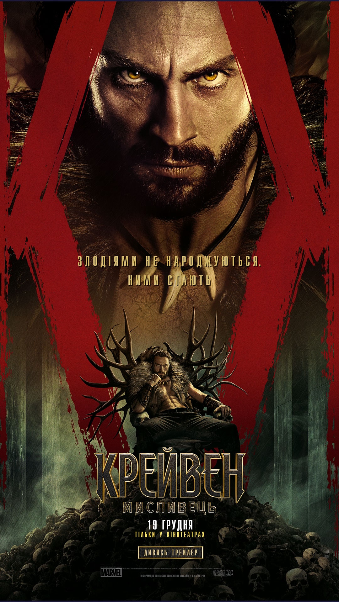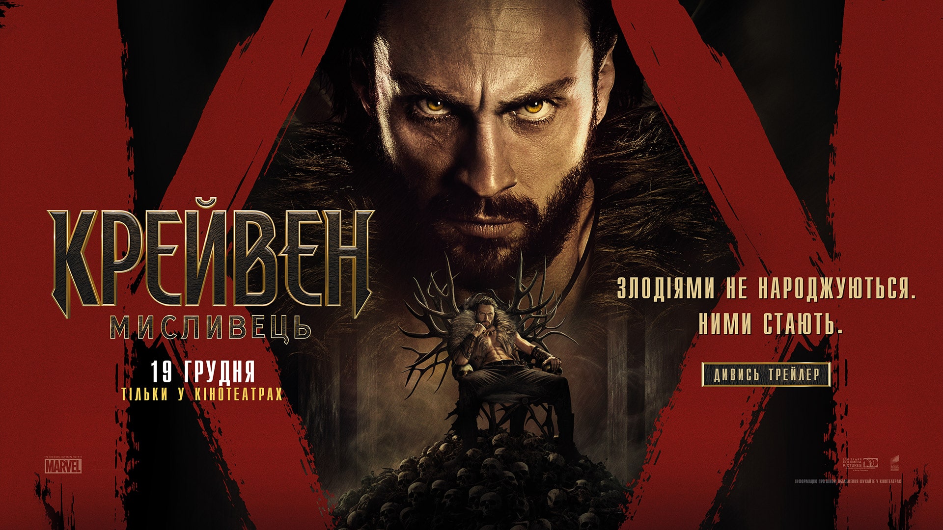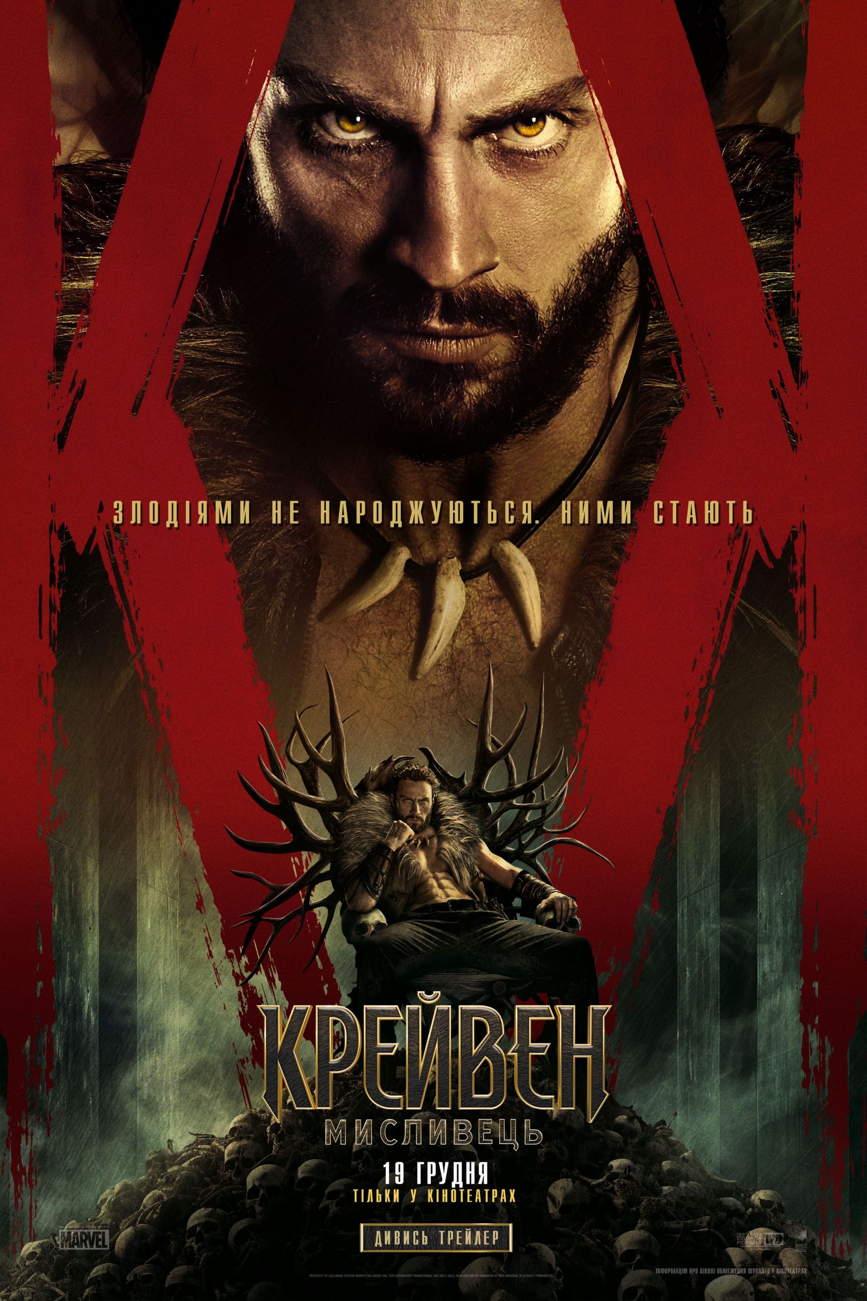 Аарон Тейлор-Джонсон у новій брутальній історії про становлення одного з найвідоміших антигероїв всесвіту Marvel! Загартований жорстокістю свого батька, Крейвен стає на шлях помсти, що не лише робить його найвидатнішим мисливцем у світі, але й перетворює на одну з найстрашніших постатей цього всесвіту!