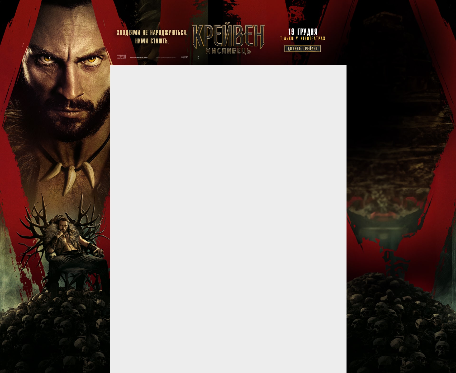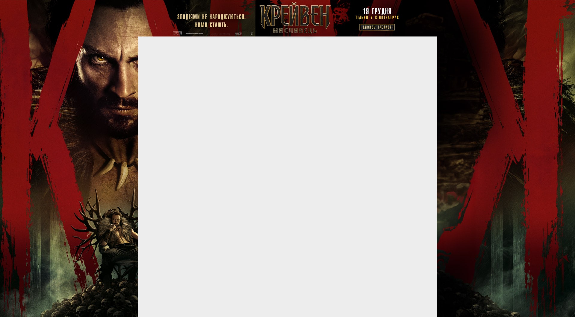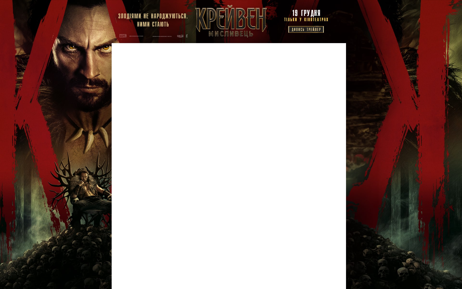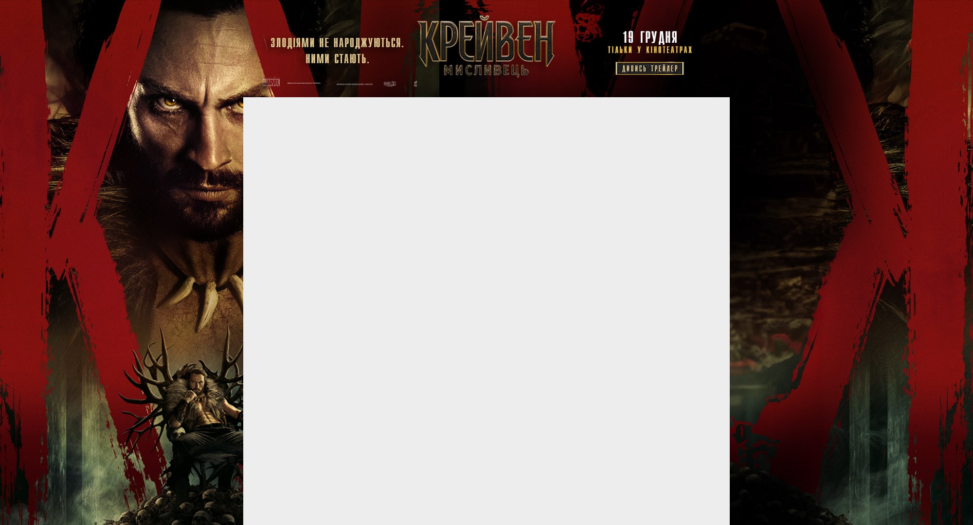 Аарон Тейлор-Джонсон у новій брутальній історії про становлення одного з найвідоміших антигероїв всесвіту Marvel! Загартований жорстокістю свого батька, Крейвен стає на шлях помсти, що не лише робить його найвидатнішим мисливцем у світі, але й перетворює на одну з найстрашніших постатей цього всесвіту!