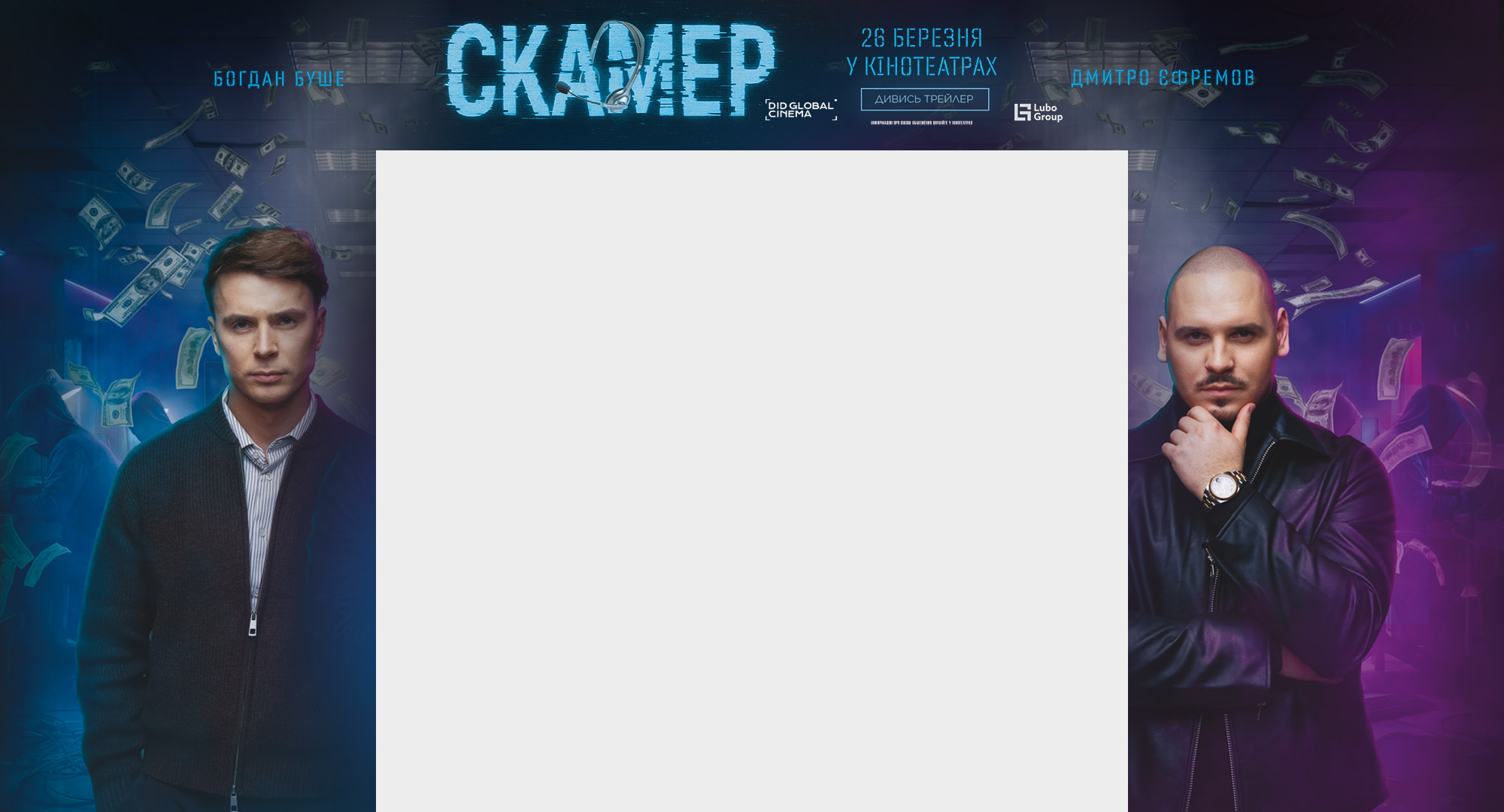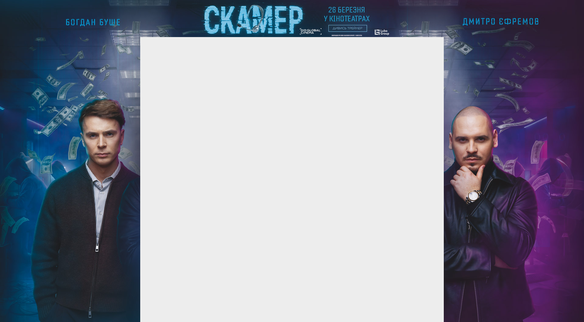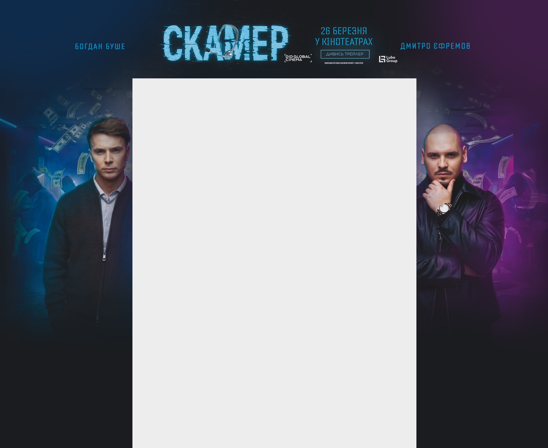 - У ролях Дмитро Єфремов, Богдан Шелудяк, Ольга Сумська, Олексій Горбунов, Макс Ткачов, Катерина Лозовицька